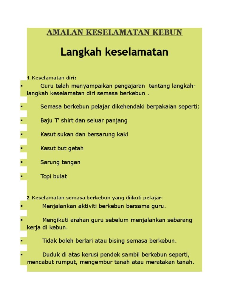 Peraturan Keselamatan Di Kebun Sumber Pengajaran